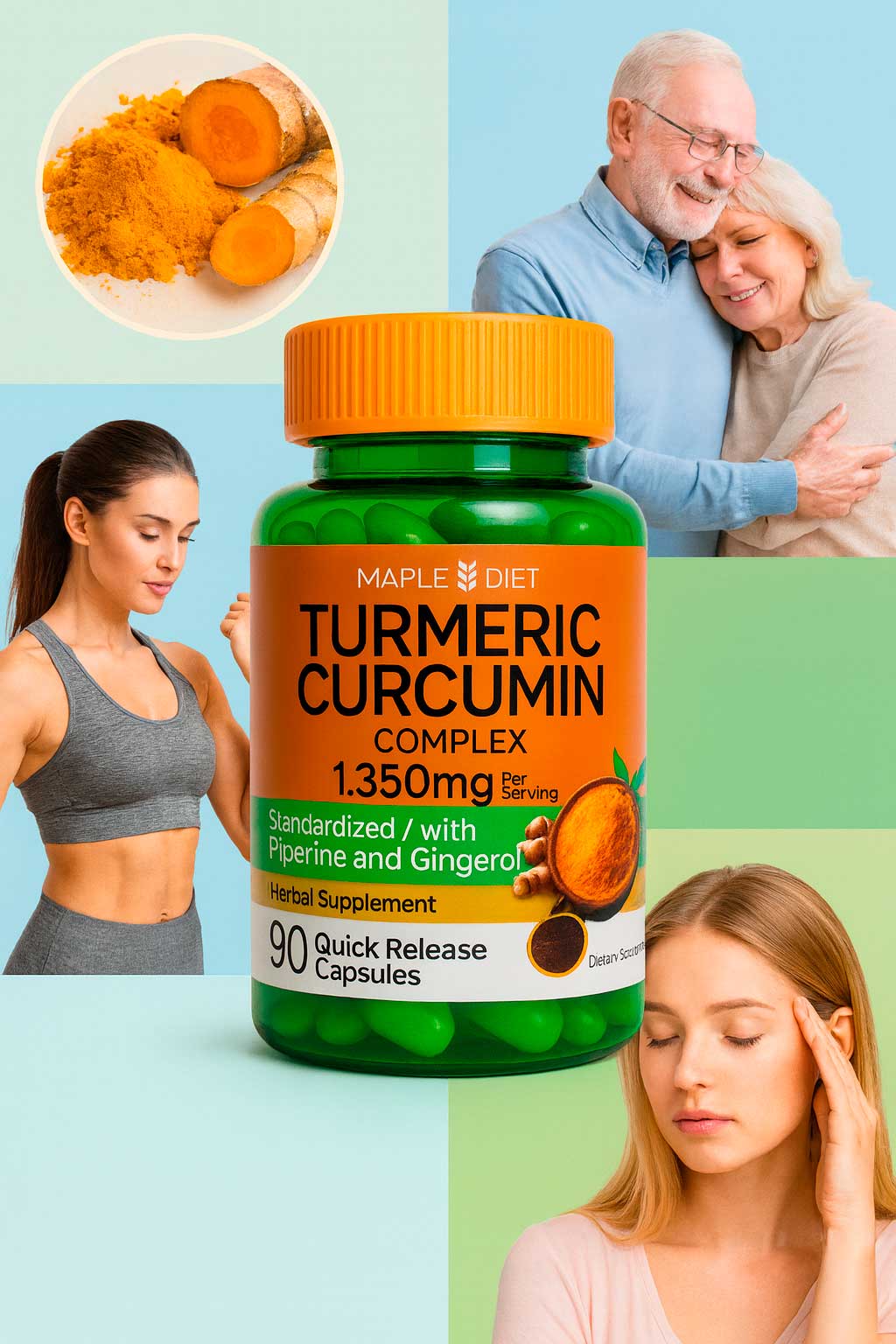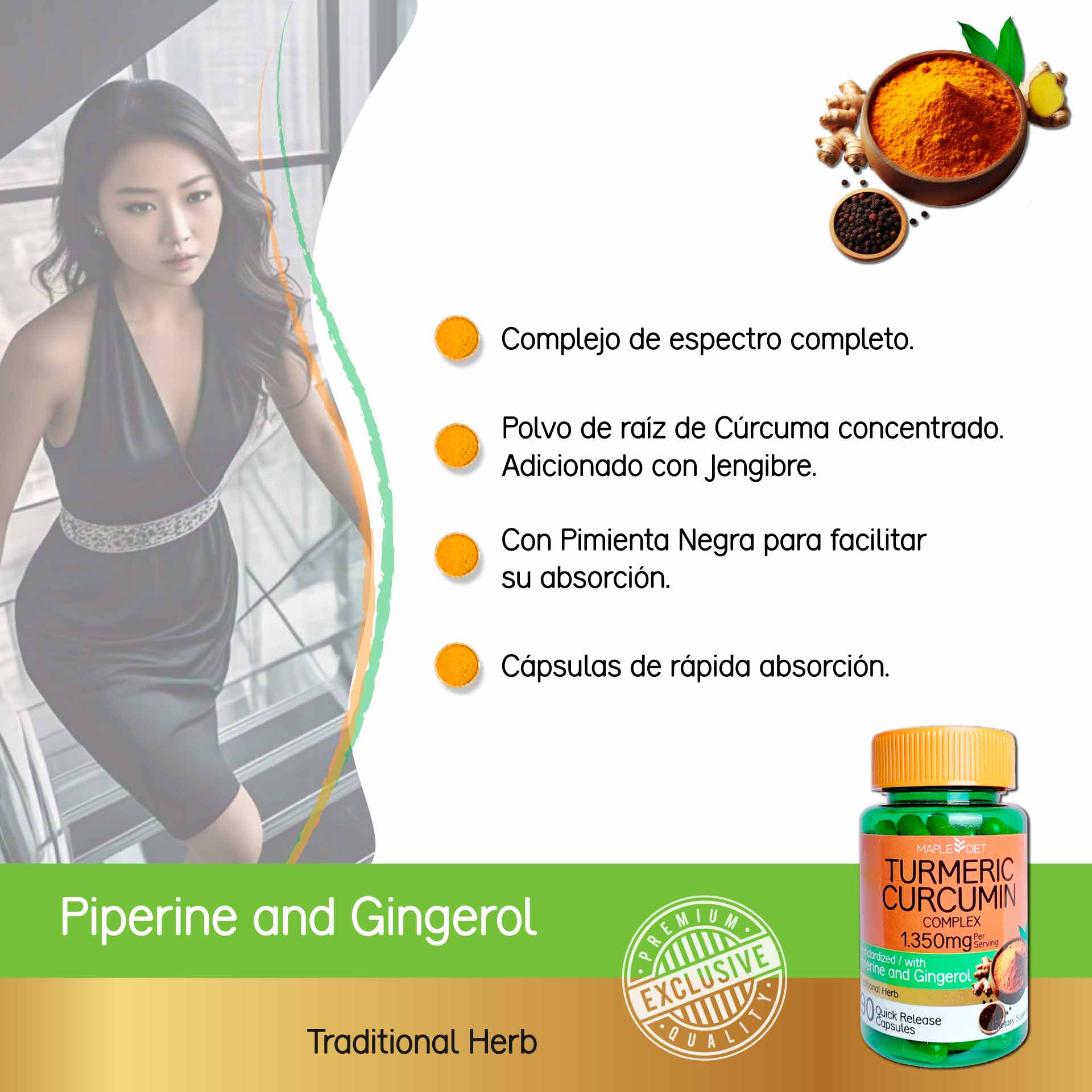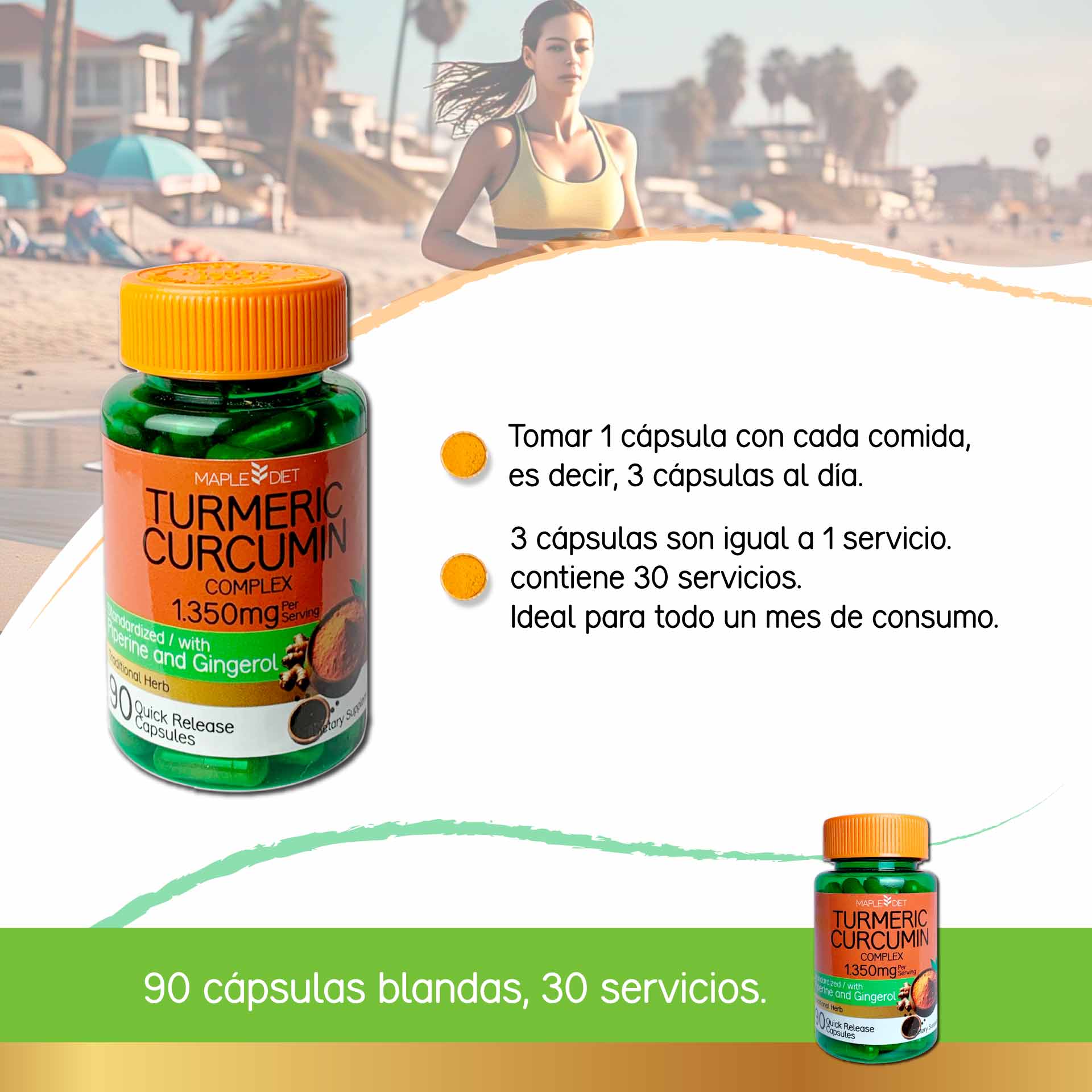 Suplemento alimenticio premium elaborado con cúrcuma (1.350 mg),